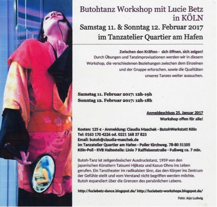 – Butoh Workshop mit Lucie Betz (Freiburg) im Tanzatelier Quartier am Hafen in Köln.